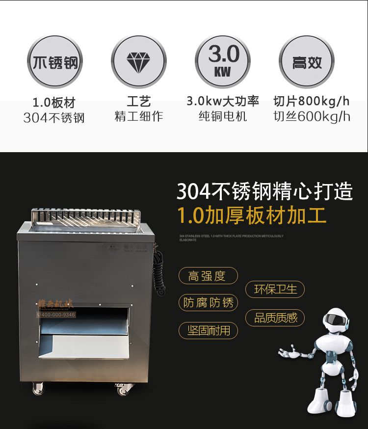 贛云2017款大型切肉機,工程款切肉片肉絲機,采用1.2mm304不銹鋼板材加工設計,配備3kw大功率純銅電機,380v工業用電,使得產品性能穩定,雙滾切刀設計,切肉效率高,雙規格切肉刀具組合,適合大眾需求。